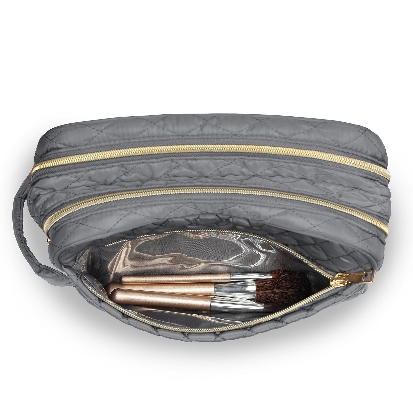- Intelligent Compartments: Inside, discover a thoughtfully organized interior. Multiple zippered compartments help you separate items effortlessly. A clear, wipe-clean waterproof lining in one section is perfect for toiletries or items prone to spills. Furthermore, dedicated elastic loops keep your makeup brushes neatly in place and protected.