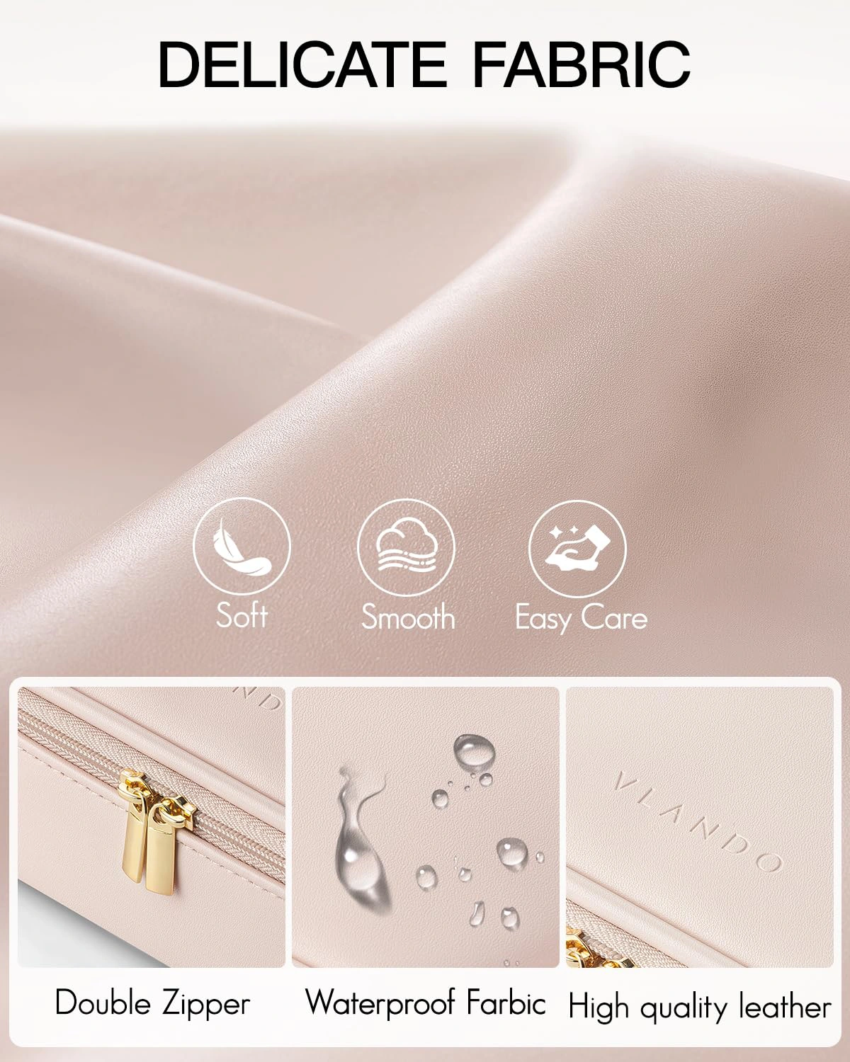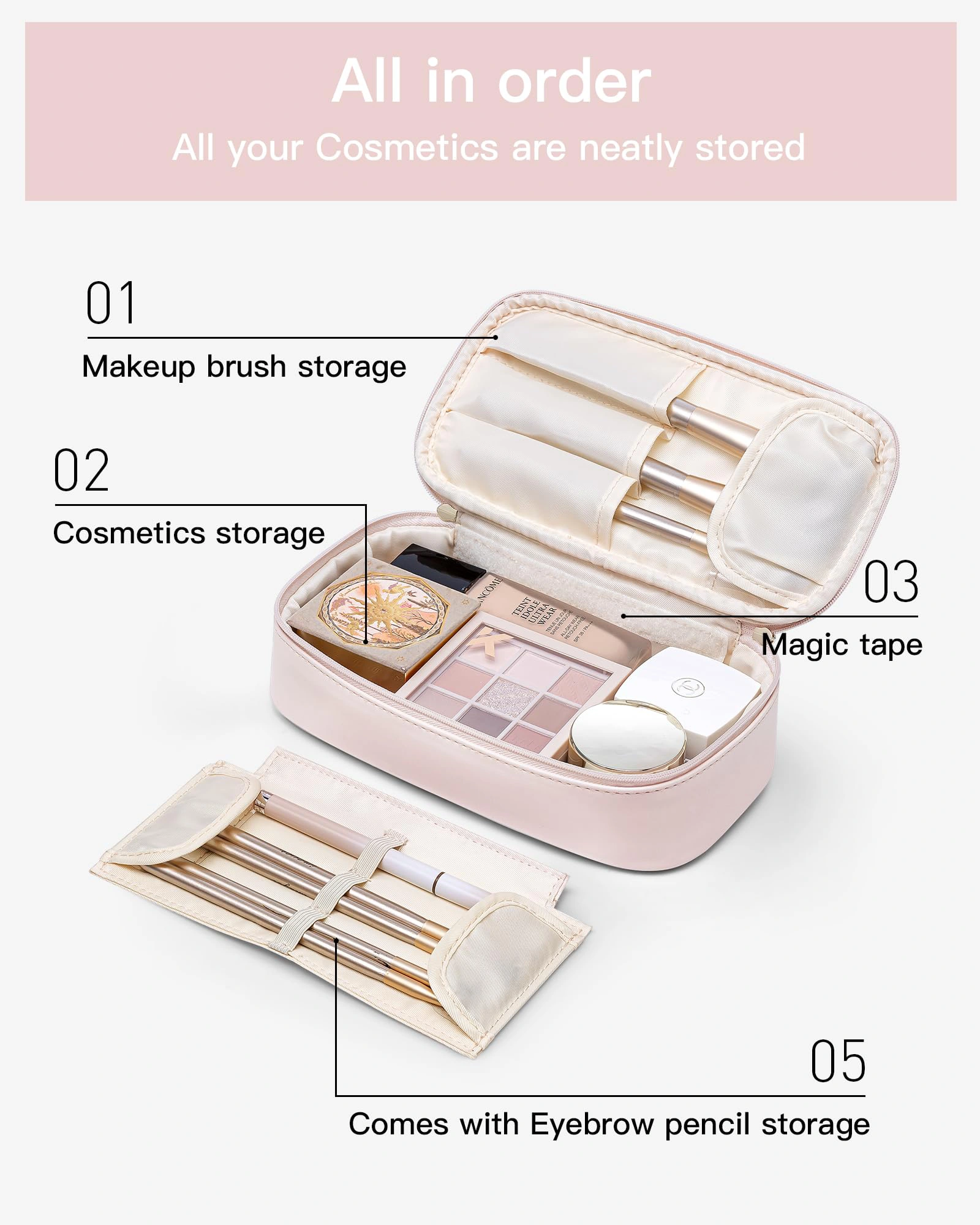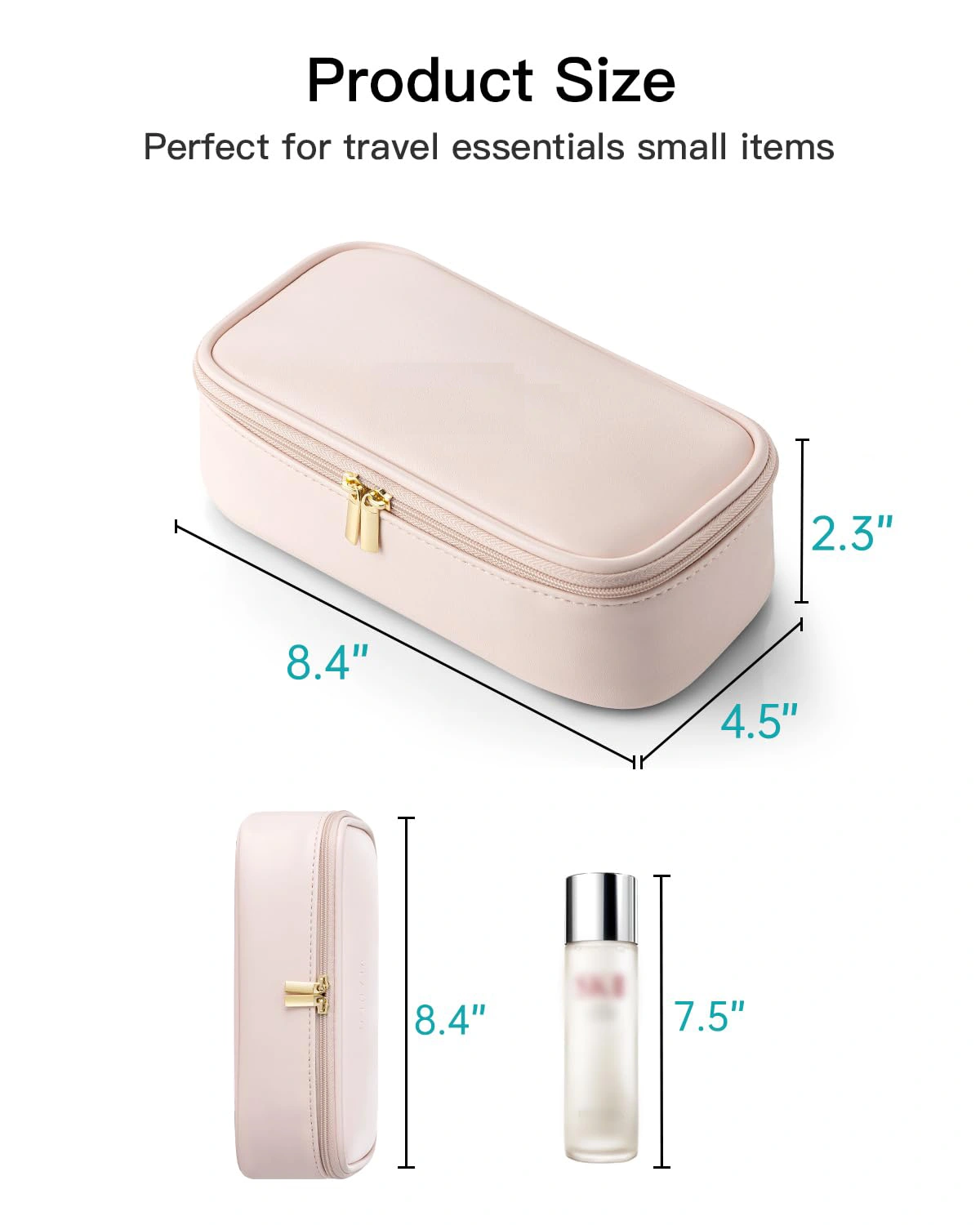 compact travel makeup bag designed for brands, retailers and gifting projects. Premium waterproof PU leather, smooth double zippers, and a smart layout keep essentials neat from desk to carry-on.